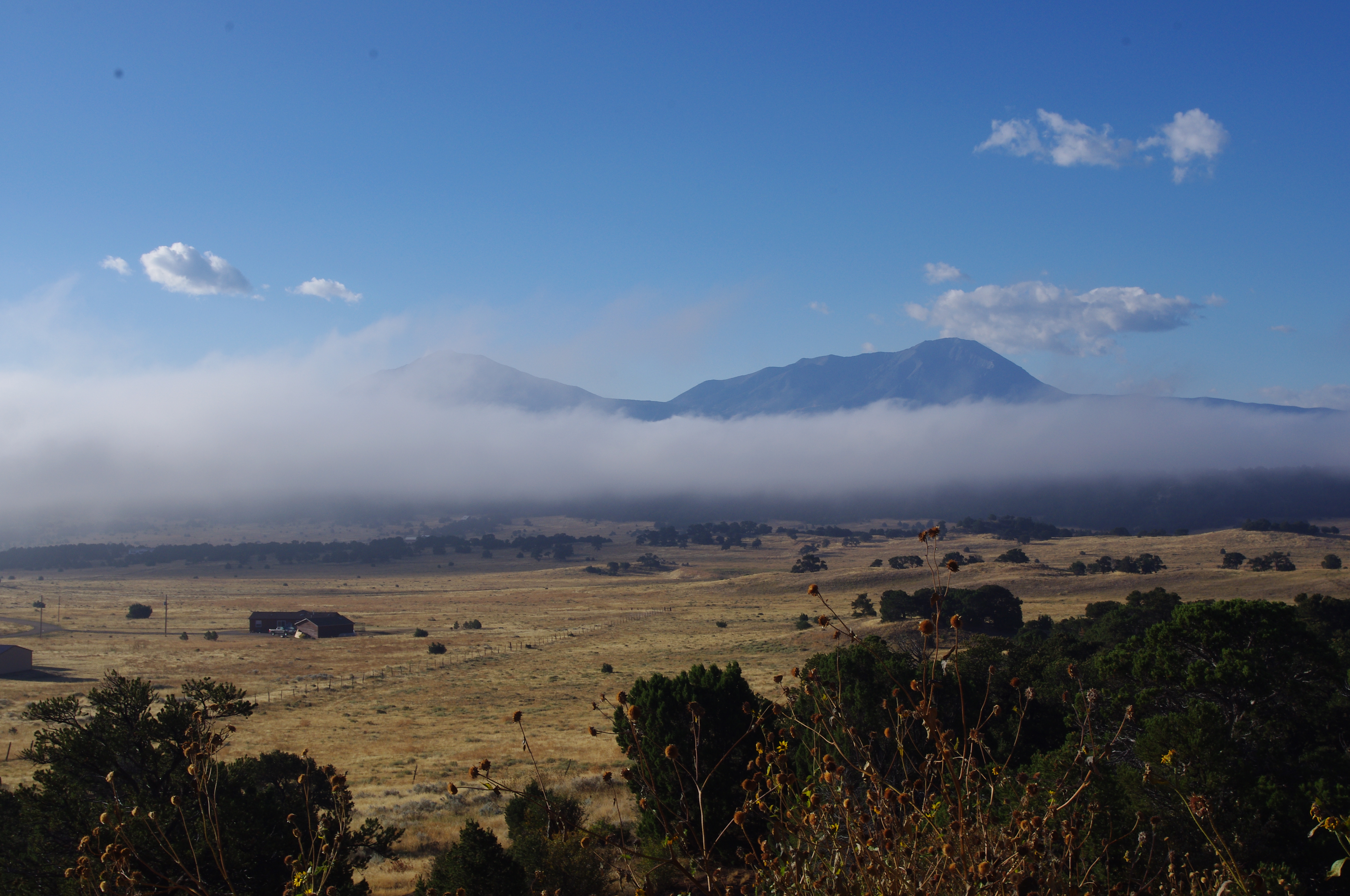 But, per usual, the fog burned off to reveal a great view of the Spanish Peaks and the Sangre de Cristo mountain range.