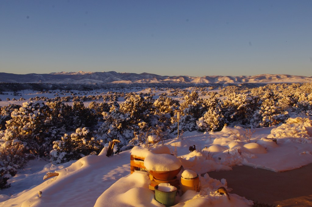This week I read an amazing interview with writer Barry Lopez in the December issue of “The Sun.” Here he explains myself to me well. As someone who grew up in small to medium-sized cities, I rarely experienced the wonder or intimacy of living close to nature. I experienced instead the loneliness and lack of opportunities for true intimacy in the human-made world. I did not even appreciate my own need to reconnect with the natural world completely until my husband Mike talked me into moving to a wide-open space in the high desert of southern Colorado.