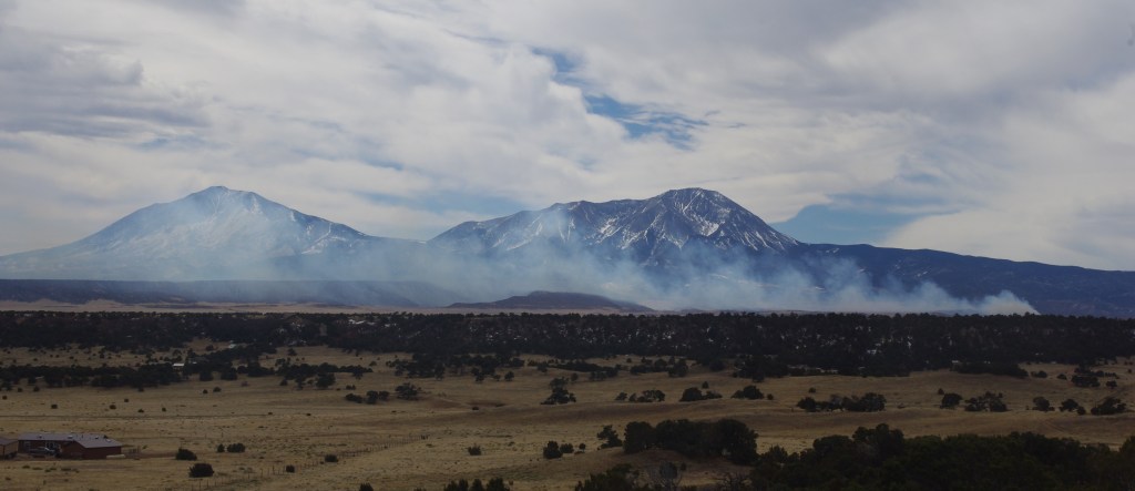 Today around noon we spotted a wildfire southwest of the tiny town of La Veta Colorado and also apparently a plane crashed at their airport around the same time! And to top it off, Trinidad had a 4.3 earthquake around 11pm. In fact, multiple small quakes were reported NW of Trinidad last night.