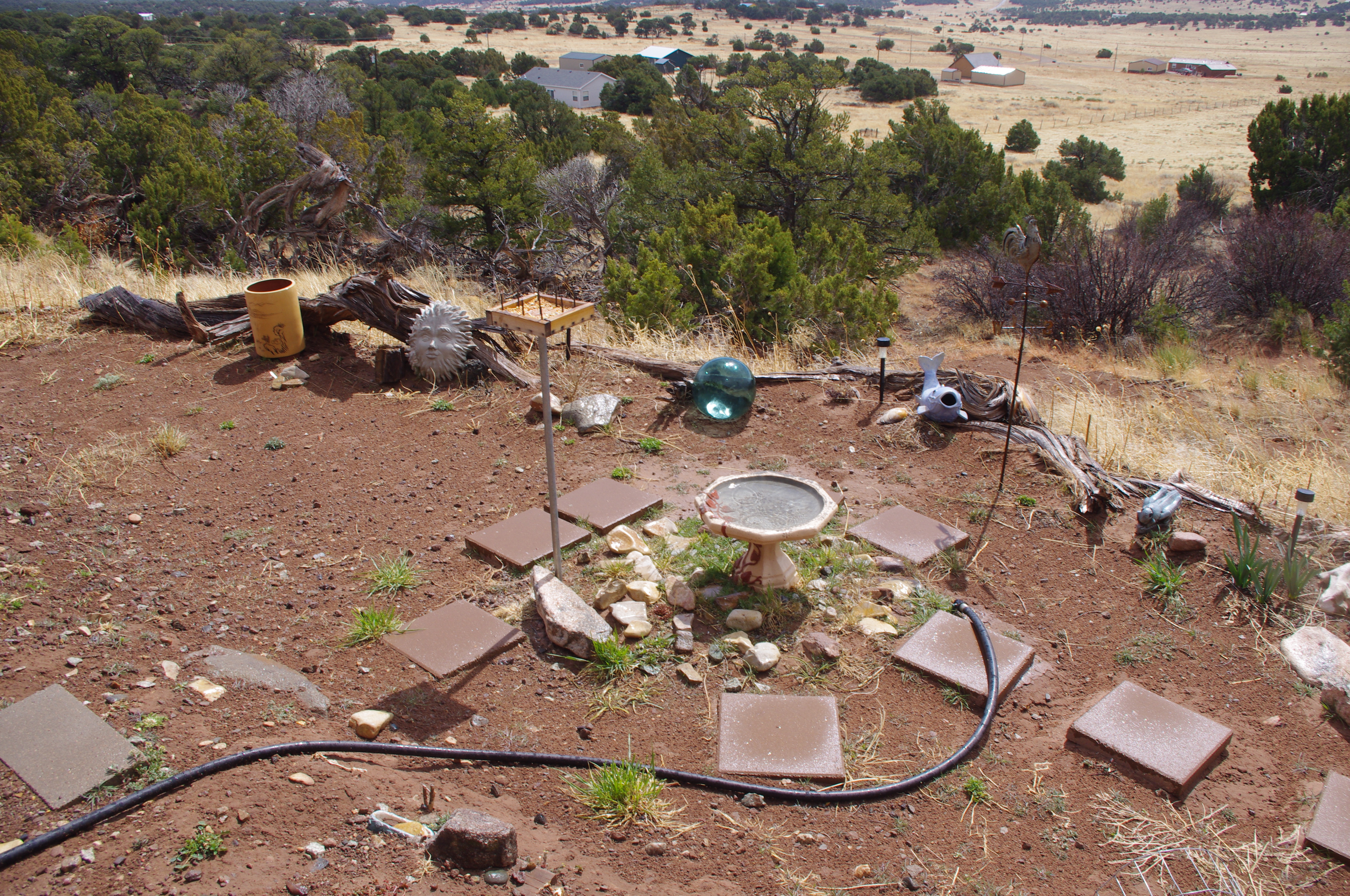 And yes, I do have some native plants coming up too, like this yucca, a transplanted Cholla cactus and some evening primrose. I sure hope the Cholla decides to bloom this July! It’s flowers are a bright magenta color.